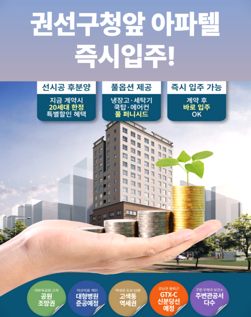 지금의 부동산 시장에서는 실거주 가능성과 투자 수익성을 동시에 만족시키는 수익형 부동산이 각광받고 있습니다. 아르비아 오피스텔은 수원 권선구 행정타운이라는 최상의 입지, 2룸~3룸의 실속 있는 평면, 3억~4억 원대의 가성비, 다양한 분양 혜택을 바탕으로 시장에서 높은 평가를 받고 있습니다.